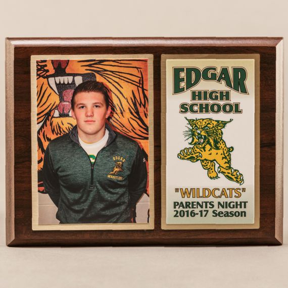 Celebrate parents or senior night with these unique two-piece picture & ID All Digital Sport plaques. The picture identifies the player and the ID features the school mascot and the year.