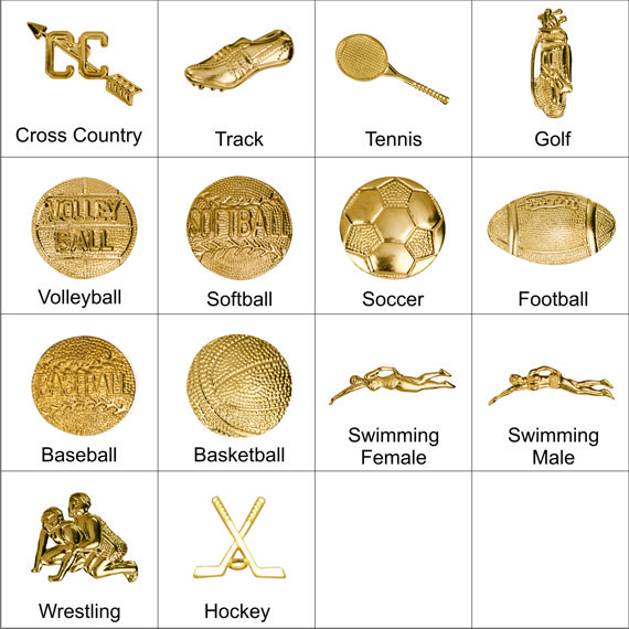 Gold includes: Gold plate adhered to the black plaque which will lay behind the chenille letter. Acrylic plate on top, secured with gold standoffs. Laser engraved black plate with gold letter engraving. Sport pins will be gold.